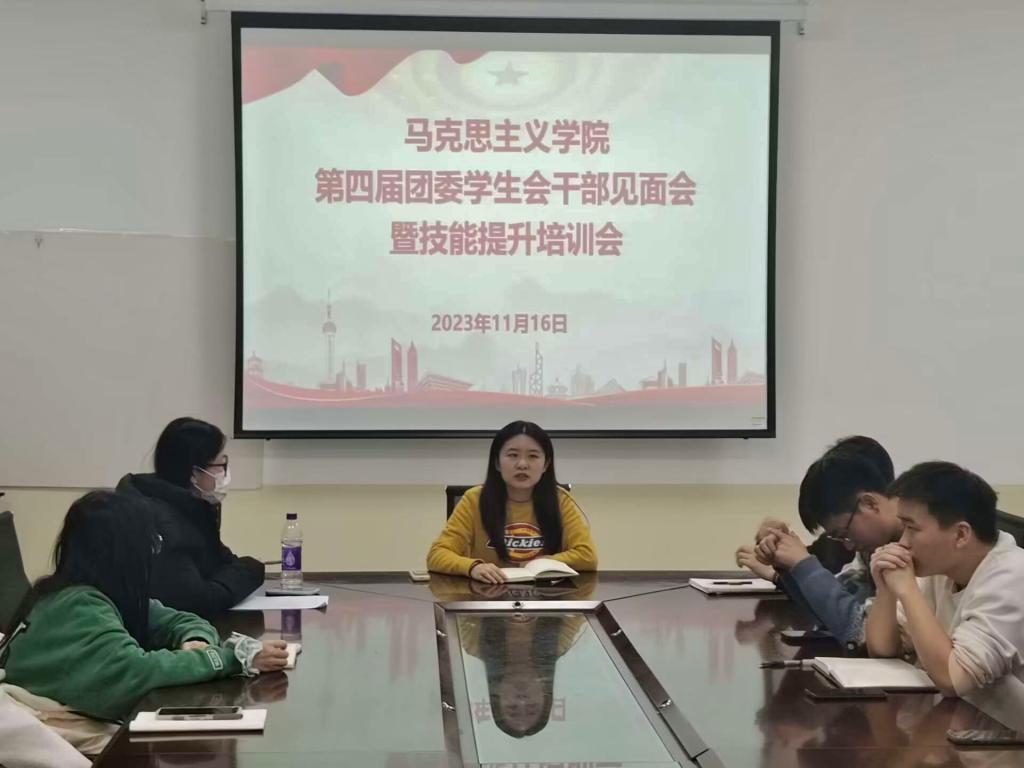 为进一步推动第四届团委学生会工作扎实有序开展,支持和引导学生会更好地服务青年学生成长成才,11月16日晚,马克思主义学院在会议室召开第四届团委学生会干部能力提升培训会,学院团委副书记付茹雪主持会议,全体团委学生会干部参与会议。