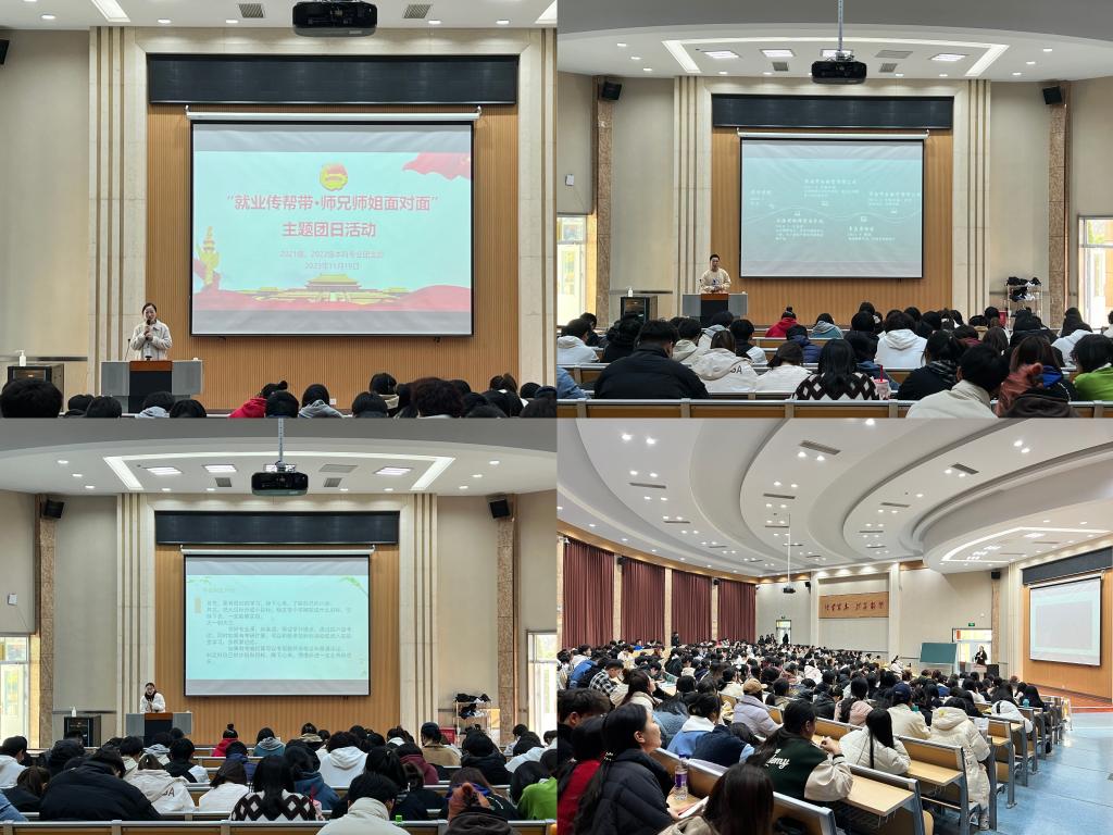 11月19日,化学化工与材料学院2021级和2022级本科专业团支部在8B103开展以“就业传帮带·师兄师姐面对面”主题团日活动。活动由该院团委书记李文婷主持,2020届优秀毕业生栾栋、顾芗和2023届优秀毕业生吴玉芳应邀参加活动。