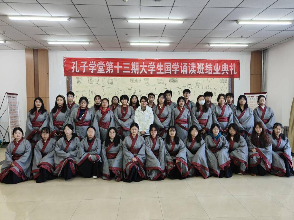 11月23日下午,我校孔子学堂第十三期大学生国学经典诵读班结业典礼在图书馆C304举行。指导老师王天卉及诵读班全体学员参加结业典礼。
