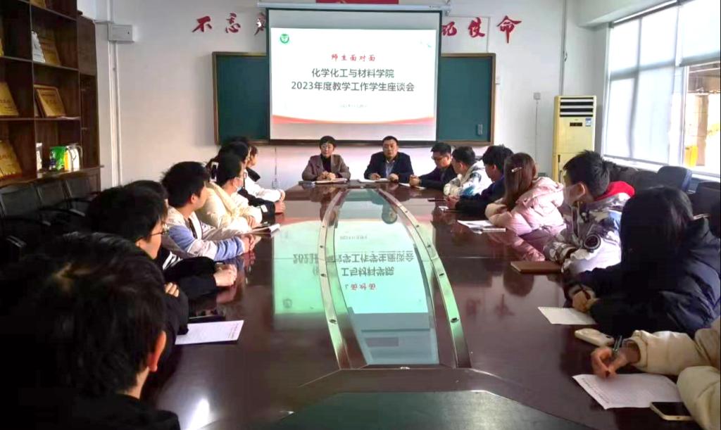 为提高教学质量,深入挖掘和总结教学工作中存在的问题和不足,搭建师生沟通交流平台,促进学风建设的深入推进,11月28日到30日化学化工与材料学院开展了2023年度“师生面对面”教学工作暨学风建设专题调研学生座谈会。学院党委书记马新蕾、院长刘涛、副院长张建、教学秘书吕京宁及各年级学生代表参加。