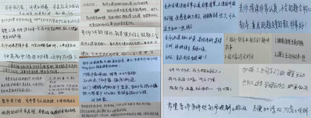 本次“师生面对面”教学工作暨学风建设专题调研系列活动自11月中旬开启历时两周,分三个阶段进行。第一阶段,任课教师对授课班级课堂教学状态及学生学习效果进行调研,通过匿名小纸条、调查问卷等形式,由学生反映在学习过程中遇到的问题和困扰,并提出对课堂教学的建议,任课教师依据反馈信息制定整改方案,调整教学策略,做到即知即改。第二阶段,各教研室召开“整改方案一对一”论证研讨会,对任课教师整改方案的可行性进行分析,并提出修订意见,确保整改实效。