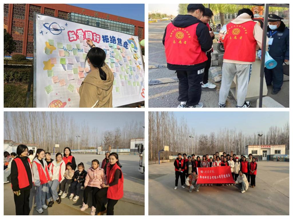 物理科学与智能工程学院举办“与爱同行,拒绝焦虑”志愿服务活动,志愿者们积极呼吁同学们写下自己的焦虑与烦恼,并及时给予朋辈的关怀与支持,在寒冷的冬日碰撞出了爱与温暖;志愿者们为学校门卫保安、清洁人员以及食堂工作人员送去热茶,感恩他们在寒冷冬日守护校园的美好和谐;志愿者们在曲阜市陵城镇杨家屯进行街道垃圾捡拾、志愿清扫的同时,对村里的孩子们发出文明倡议,并与村里的老人谈心谈话、帮助老人打扫庭院,为行动不便的老人提供暖心陪伴。