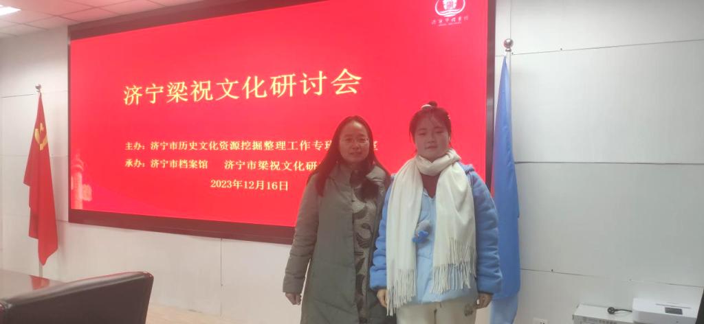 12月16日,由济宁市历史文化资源挖掘整理工作专班工作室主办,济宁市档案馆、济宁市梁祝文化研究会承办的“济宁梁祝文化研讨会”在济宁市档案馆成功举办。人文与传播学院李艳博士和2022级汉语言文学(师范)专业学生申钰凤应邀参加此次会议并作报告。