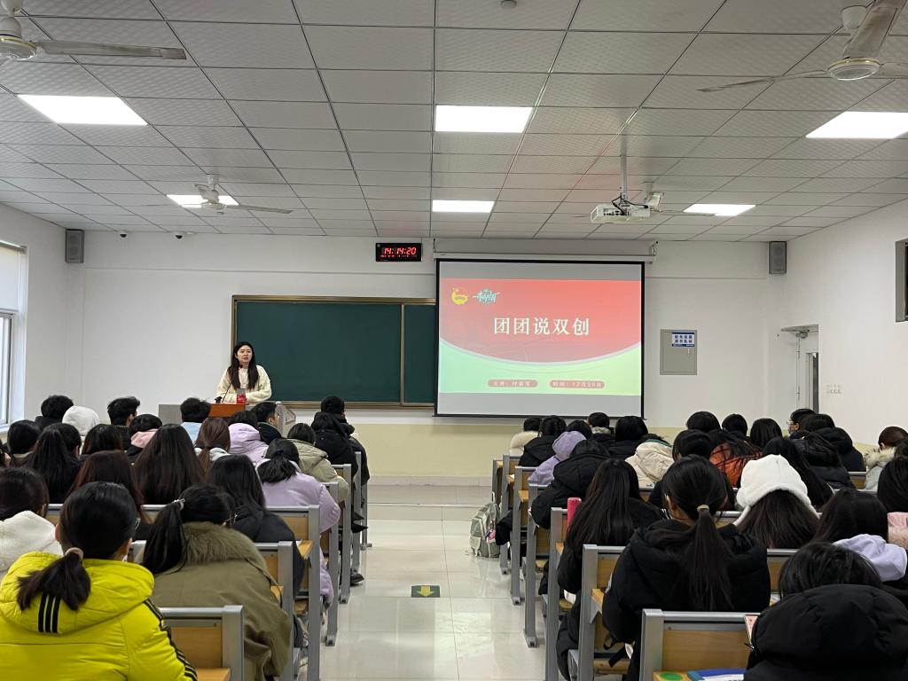 为进一步帮助学生深入了解大学生创新创业相关政策,备战各类学科赛事,12月18日、20日下午,马克思主义学院开展“团团说双创”大学生创新创业赛事解读,本次活动由院团委副书记付茹雪主讲,2022级、2023级全体学生参与活动。