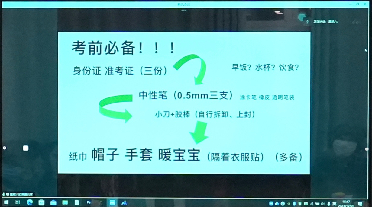 学院邀请2023届数字媒体专业优秀毕业生、在读硕士研究生景雅文进行了《临近考试如何缓解压力,做好心态调节》专题线上分享交流。同时通过学院电子屏、微信公众号、抖音号等途径推送暖心鼓舞,营造良好备考氛围。