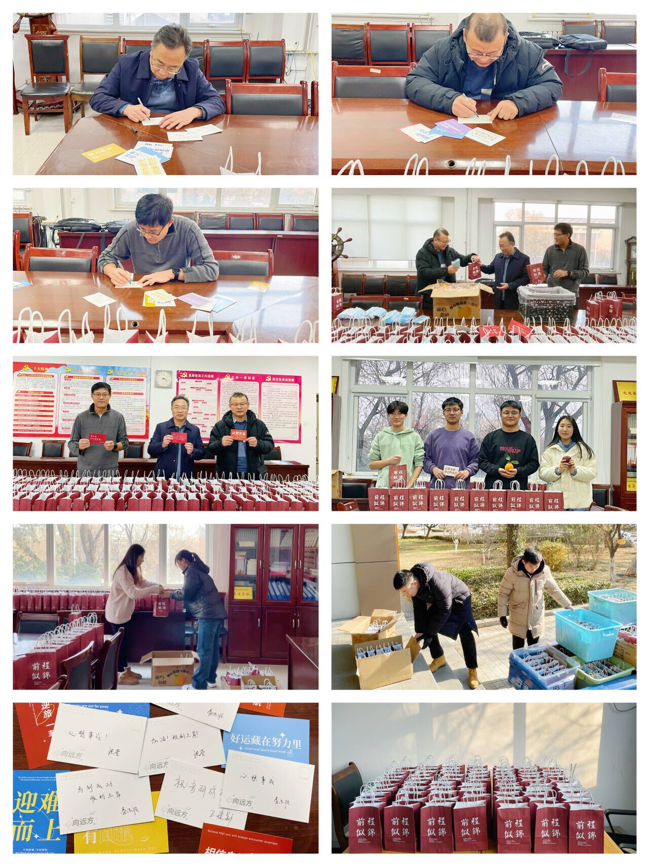 为给考研学子送祝福,学院领导班子、毕业班辅导员、学生党员代表共同为考研学子精心准备“前程似锦”考研大礼包。