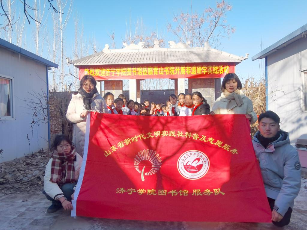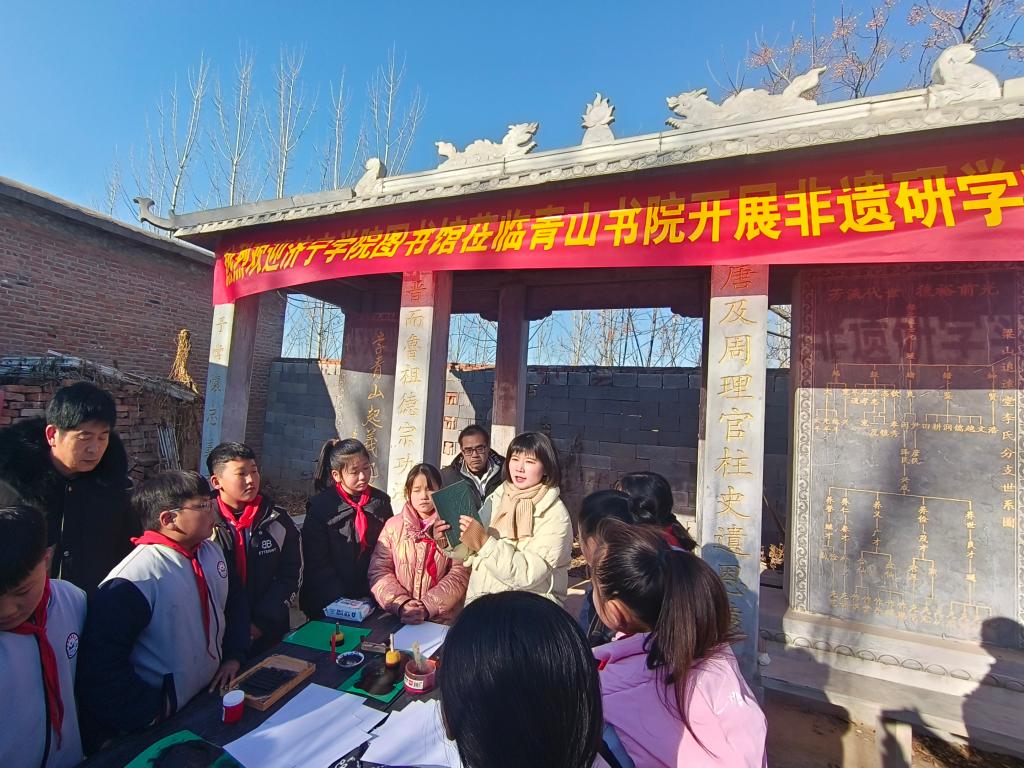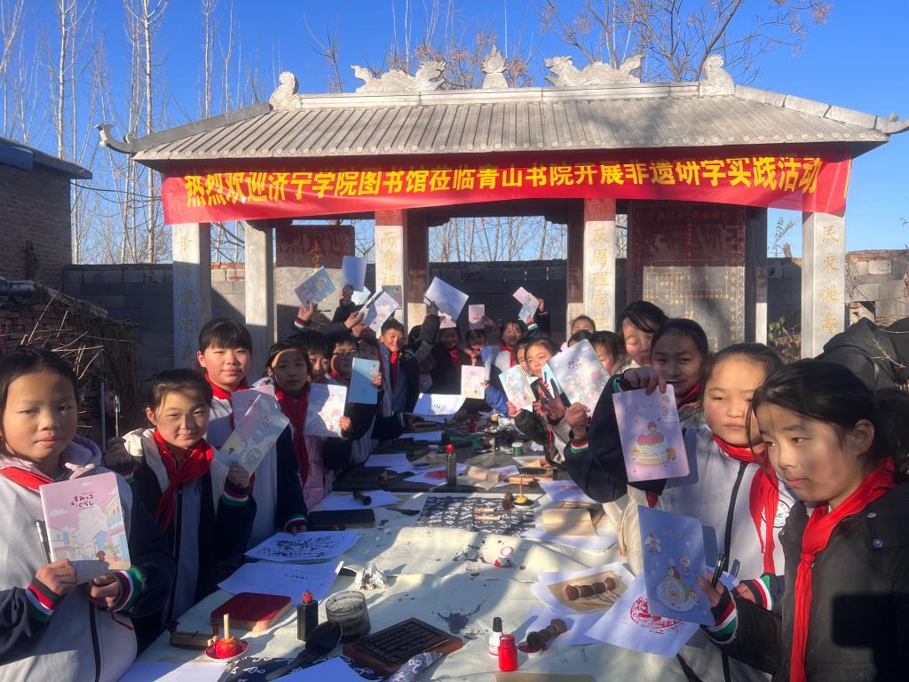 为响应济宁市开展“社科在身边”活动号召,发挥社科普及基地的阵地作用,加强基层群众文化培育,传播中华优秀传统文化,亚星在线登录官网图书馆与梁山县耿楼村青山书院通力合作,于12月21日下午,由我校图书馆馆长王绍锋带领宋敏、王天卉、冯艳梅及大学生志愿者孙朔、梁士慧一行赴梁山,面向当地小学生开展了以“匠心雅趣,雕文镂字”为主题的非遗文化普及志愿服务活动。