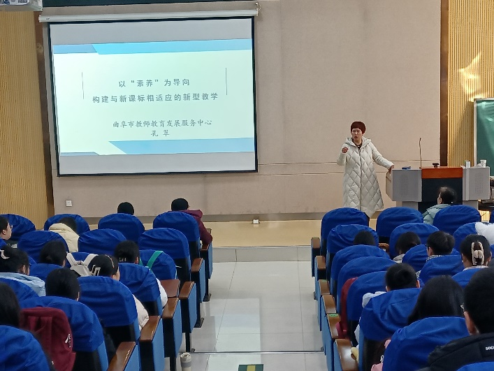 为夯实学生专业基础,充分利用校外优秀教师资源,化学化工与材料学院于12月21日开展了第三期“厚植根基,筑梦未来” 师范生专业成长主题研讨系列活动。本期有幸邀请到曲阜市教师教育发展服务中心高中化学教研员孔翠老师,学院部分教师、2020级、2021级和2022级化学专业学生参加了本次活动。