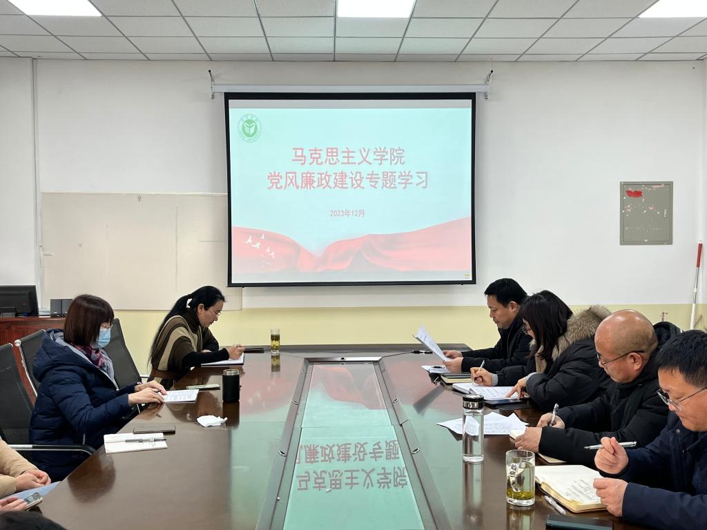 12月21日,马克思主义学院在院会议室召开党风廉政建设专题学习会议暨“加强党风廉政建设 营造风清气正的良好环境”主题党日活动。全体党员教职工参加会议。