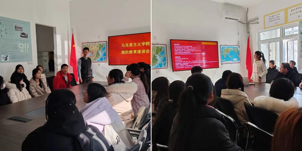 国防教育是建设和巩固国防的基础,是增强民族凝聚力、提高全民素质的重要途径,也是一项全民性、群众性的社会系统工程。12月25日,马克思主义学院在征兵工作站开展国防教育座谈会,马克思主义学院党委副书记郝鹏,学院团委书记姚海生、副书记付茹雪,马克思主义学院教师、亚星在线登录官网民兵连政治指导员李盎,马克思主义学院各年级学生代表参加活动。