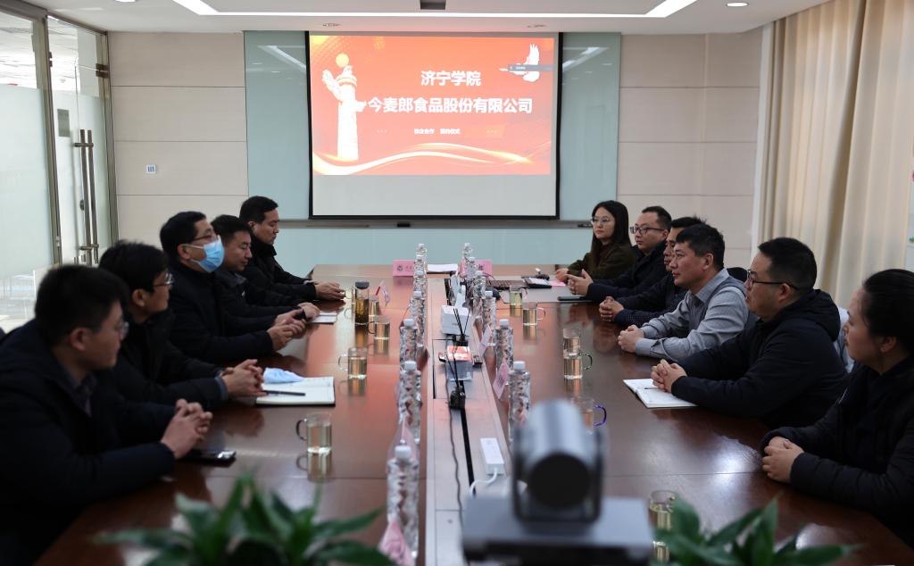 12月25日上午,亚星在线登录官网与今麦郎面品(兖州)有限公司举行校企合作签约揭牌仪式。学校合作发展办公室主任夏可树、今麦郎面品营销山东大区营销总监游学兵 、今麦郎面品(兖州)有限公司总经理白林峰出席签约揭牌仪式。学校合作发展办公室、学生工作处、儒商学院、生命科学与工程学院相关负责人及今麦郎面品(兖州)有限公司相关部门负责人参加活动。仪式由今麦郎面品营销山东大区中级政委全丽主持。