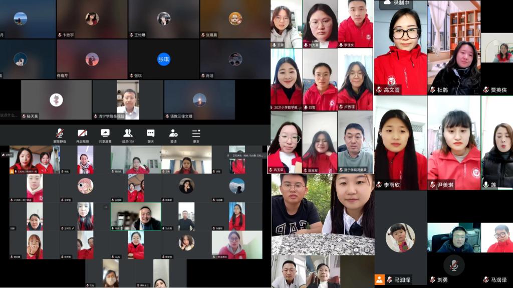 实习学校指导老师组织学生备课讲课、教研活动,侧重面对面的实时指导。一到岗位,各实习单位便为学生配备了一对一的指导教师,带着学生熟悉学生、适应岗位,培养学生的教育教学规范和班级管理能力。教案书写、作业批改……一点一滴的鞭策下,我们学生逐步成长为优秀的师范毕业生。山东教育援疆教师带领学生针对当地中小学学生情况开展教育活动,研讨教学方法,传授教学经验。每当课间闲暇,办公室总会传来我们学生与援疆教师的讨论声,敬重与钦佩、爱护与温暖充满了小小的房间。二级学院实习指导老师在专业深度、理论研究、教育前沿等方面提供支持,引导学生在专业道路上走的更远。教师教育学院实习指导老师戴丽丽通过远程会议系统给学生作讲座,强调要精读教材,把教材研究透彻,明确每节课的教学侧难点,才能促进学生更好的掌握知识。
