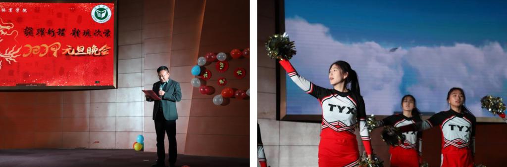 晚会在体育学院啦啦操队及跳绳队《体跃风采》热情似火的表演中拉开帷幕。徐刚院长向全院师生及到场来宾作新年致辞。他总结了过去一年取得的成就,并向全院师生们送去了美好的祝愿,鼓励大家在志之所向、一往无前的壮阔航程中踔厉奋发,共赴春天之约、共圆复兴之梦、共创新的辉煌。