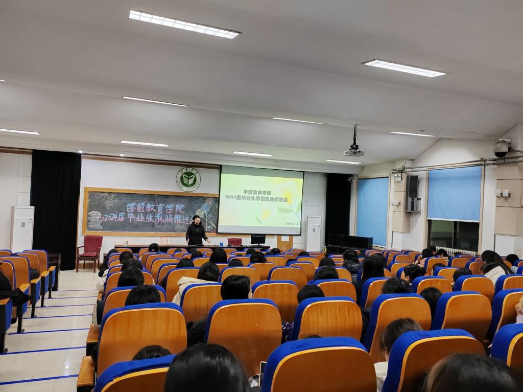 为进一步推进2024届毕业生就业工作,确保寒假就业服务不断线,助力毕业生尽早就业。1月5日晚,学前教育学院在学术报告厅召开2024届毕业生就业工作推进会,学生管理科老师、毕业班辅导员及2024届全体毕业生参加会议。