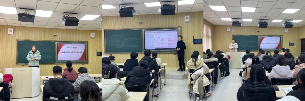 郑晓雯围绕实习目的、实习安排、实习任务和实习要求四个方面进行了讲解,并要求学生寒假中认真备课、撰写教案,做好实习预备工作。尹玲对实习期间各类实习材料的填写和注意事项进行了详细解读。李文婷安排部署了实习期间安全和住宿工作,签署安全责任书。