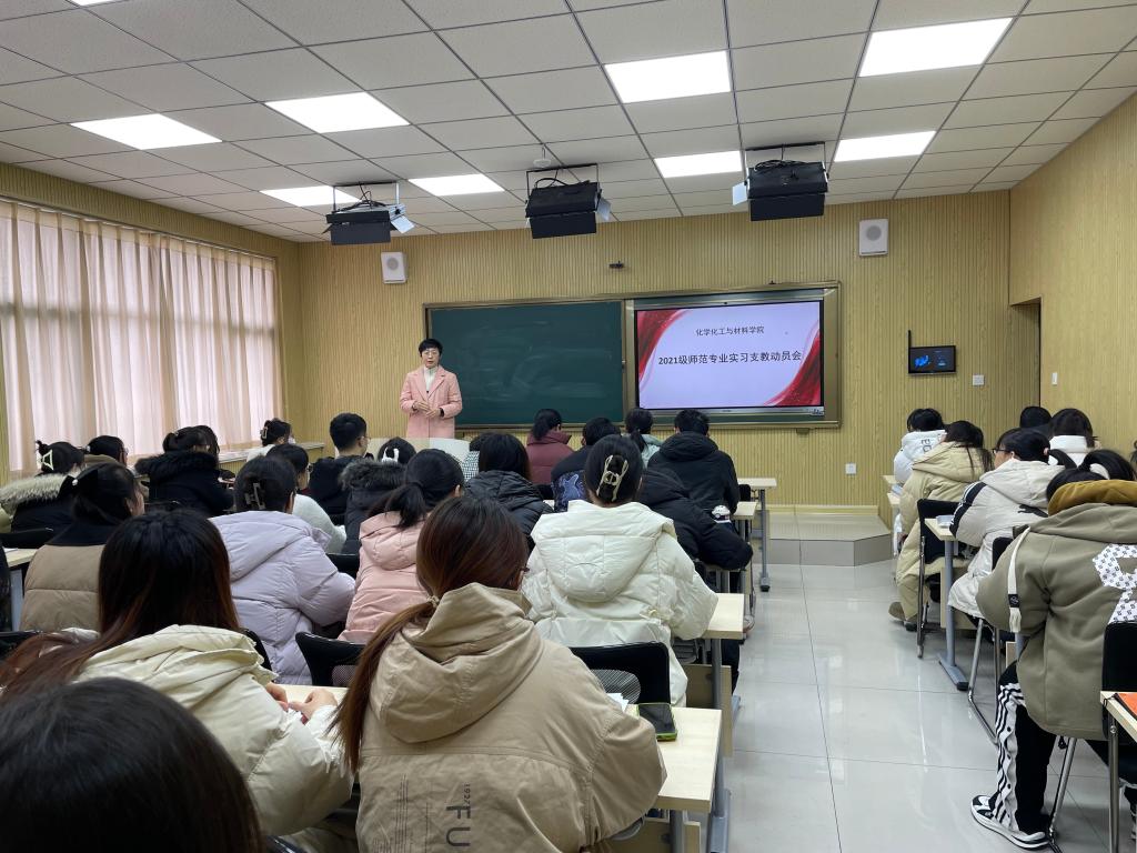 1月9日上午,化学化工与材料学院召开2021级师范生实习支教动员会。学院党委书记马新蕾出席会议,郑晓雯、尹玲老师和2021级师范专业全体学生参加会议,会议由辅导员李文婷主持。