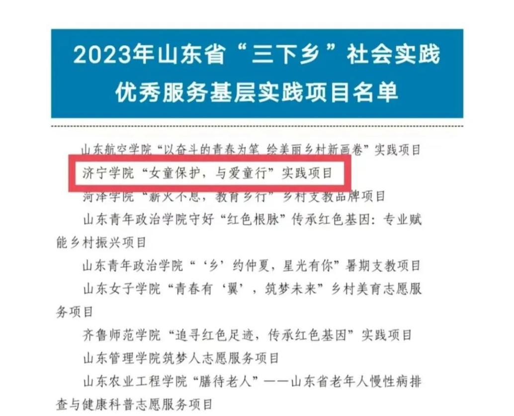 近日,2023年山东省暑期“三下乡”社会实践获奖名单公布,亚星在线登录官网化学化工与材料学院“女童保护,与爱童行”实践项目获评优秀服务基层实践项目,丰雪情获评优秀指导教师称号,李妍获评优秀学生称号。