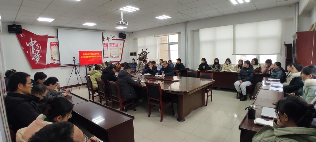 卫建勋首先结合本科教育教学审核评估工作,传达了杨天梅书记在基层党组织书记述职评议考核会议上关于职称评聘、绩效工资等方面的讲话精神。要求全体教师深刻领会讲话精神,按照学校统一部署,做好寒假期间企业走访、基金申请书撰写、科研和教学等工作。