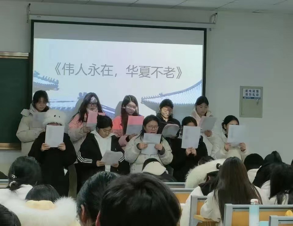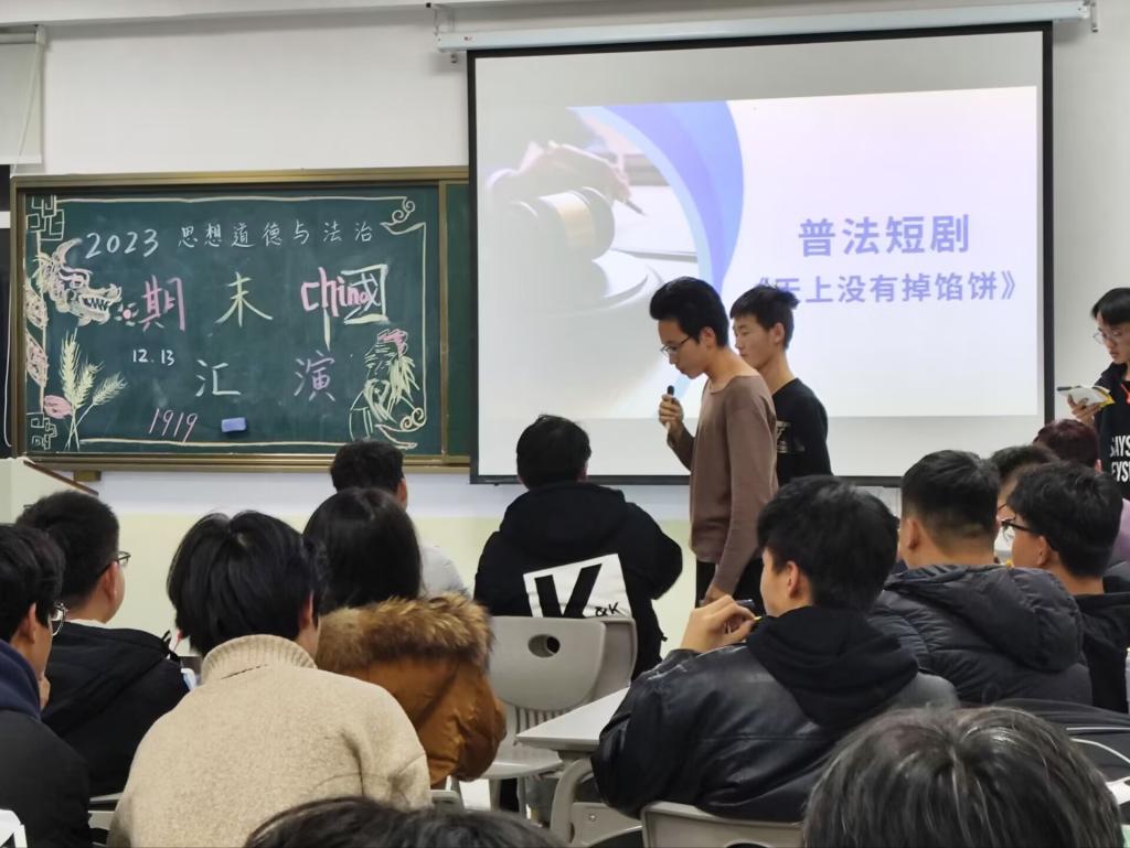 活动中,同学们采用讲、诵、演等多种形式,将诗词、思政、实践、科普、讨论等元素融为一体,各班以小组为单位,依次上台展示各自的作品:有的小组通过情景剧的形式再现南昌起义、井冈山会师、遵义会议、重庆谈判、抗美援朝战争等历史事件,用朴素的表演和真挚的感情诠释出对一代伟人的理解和崇敬;有的小组通过短视频的形式塑造革命先辈的鲜明形象,演绎出真实生动的历史细节和感人至深的革命故事,展示出一代代青年人为了理想接续奋斗、满怀对祖国和人民的赤子之心,勇于追梦圆梦;有的小组通过朗诵《现代人与马克思的对话》《人民英雄王杰》《渔家傲•反第一次大“围剿”》《七律•长征》等一首首脍炙人口的诗词,热情歌颂革命先辈为中华民族、中国人民建立的不可磨灭的历史贡献,表达了对马克思主义的深刻理解和高度认同;有的小组通过普法短剧表演,把社会主义法治观念内化于心、外化于行。