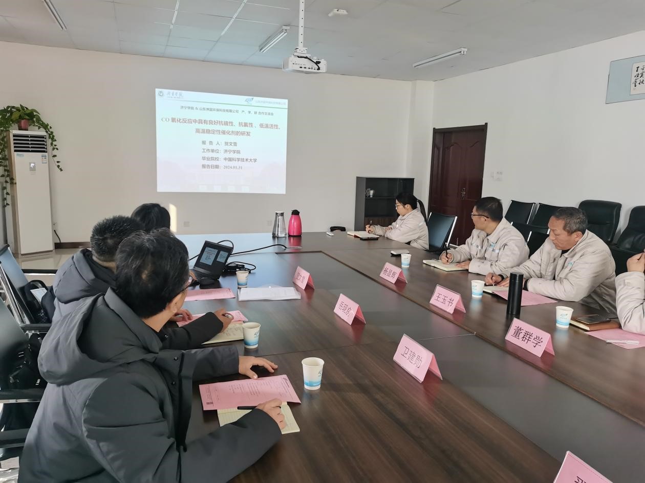 1月31日上午,物理科学与智能工程学院党委书记卫建勋、副院长岳现房、学术副院长翟倩倩和青年教师贺文雪赴山东洲蓝环保科技有限公司洽谈横向课题开发、产学研基地建设等事宜。
