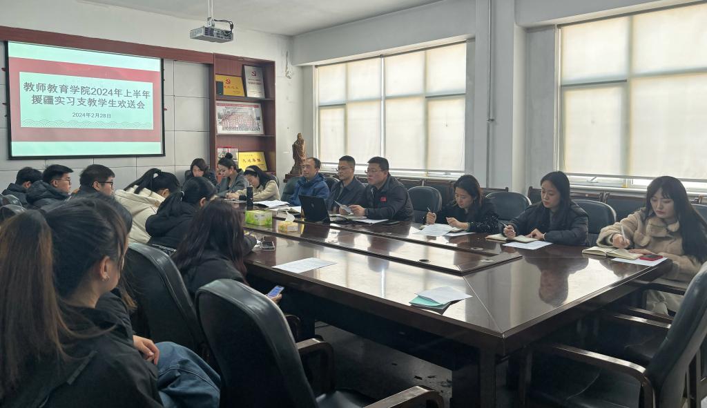 千里援疆育桃李,接力前行守初心。2月28日,教师教育学院为2024年春季援疆实习支教学生举行欢送会。教师教育学院党委书记刘勇、院长曹光海、党委副书记杜鹃、学术副院长王帅、全体辅导员及援疆支教学生参加了活动。