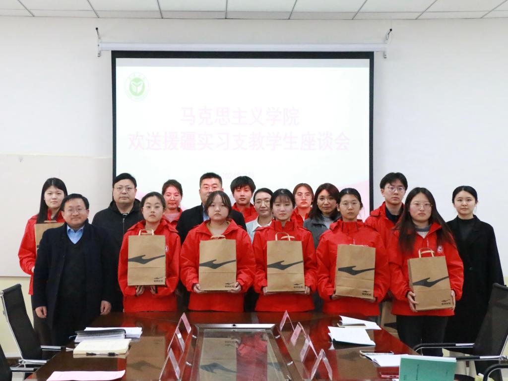 2月29日下午,马克思主义学院欢送援疆实习支教学生座谈会在学院会议室举行。学院党委书记李效民,副院长沙世蕤,党委副书记郝鹏,副院长周争艳,学院辅导员及10位援疆支教学生参加会议。会议由沙世蕤主持。