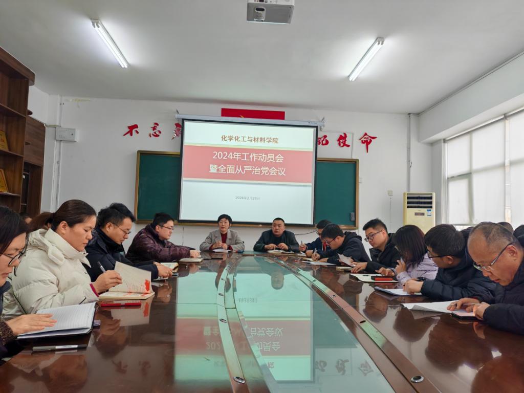 2月29日下午,化学化工与材料学院召开2024年度工作动员会暨全面从严治党会议,会议由该院党委书记马新蕾主持,全院教职工参加会议。