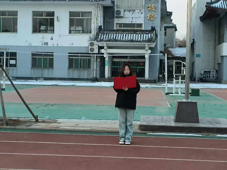 伴随着庄严的国歌声,鲜艳的五星红旗在全体师生的注视下缓缓升起。在场的每一个人都庄严肃立,向国旗行注目礼,饱含着对祖国的崇高敬意。在国旗下演讲环节中,2023级学前1班曹竞予同学围绕“青年当努力,全面发展争今夕”这一主题,进行了演讲。曹竞予同学表示,要坚定信念、志存高远,争做堪当大任的追梦人;要抓住机遇、珍惜韶华,争做激扬青春的奋斗者;要勇挑重担、敢于担当,争做推动学校发展的主力军。同时,她也勉励同学们要以饱满的热情投入到新学期的学习和生活中,为实现自己的理想努力奋斗。