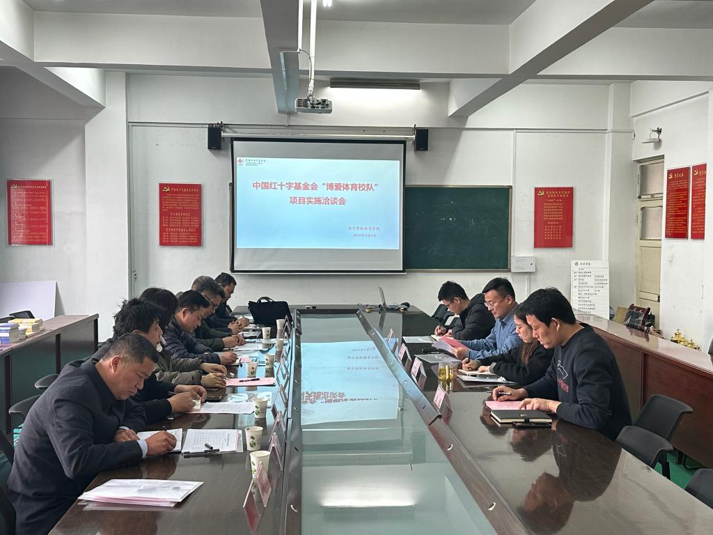 3月4日下午,中国红十字基金会“博爱体育校队”项目实施洽谈会在亚星在线登录官网体育学院二楼会议室顺利进行。体育学院院长徐刚、学术副院长杨皖霖、办公室主任马东顺和来自曲阜市农村小规模学校发展共同体的十所小学的校长参加了洽谈会。会议由科研处金超主持,双方就“博爱体育校队”项目的具体实施细节进行了探讨。