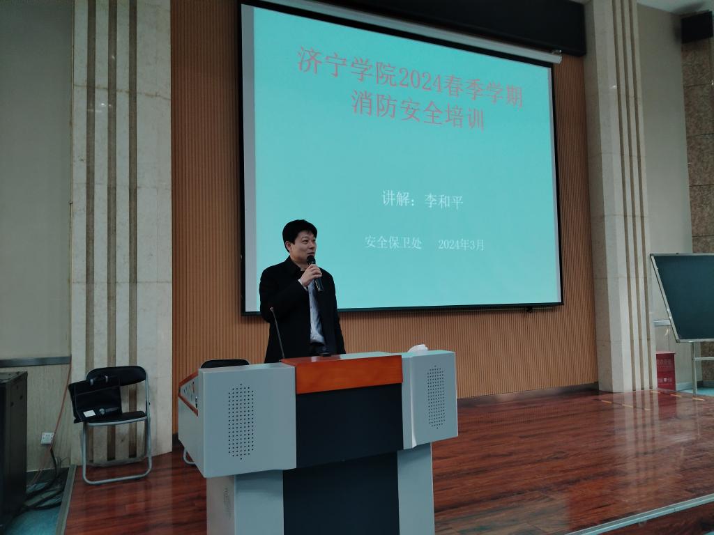 3月7日下午,学校在8号教学楼报告厅举办春季学期消防安全培训会。安全保卫处和学生工作处相关负责人,各二级学院安全员、义务消防队员、大学生安委会全体成员约500人参加了学习培训。