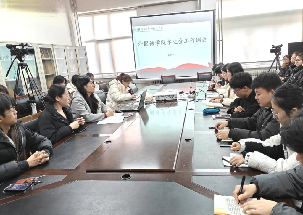 为加强学生会队伍建设,进一步激发学生会干部的工作活力,3月7日下午,外国语学院在学院一楼会议室召开春季学期学生会工作例会。外国语学院党委副书记文灿、团委副书记姜璨、辅导员段明月、刘晓晖和全体学生会干部参加。会议由团委副书记姜璨主持。