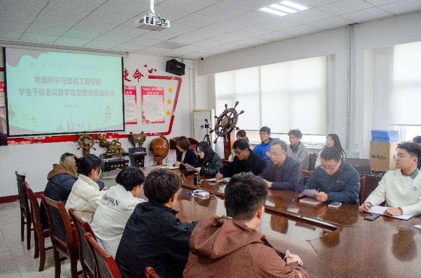 为扎实做好新学期各项学生工作,了解学生的思想动态,3月7日,物理与电子工程学院在理科楼二楼会议室召开新学期学生干部会议暨学生思想动态调研会。学院党委书记卫建勋、副书记李洪波、全体辅导员老师及全体班长、团支书参加会议。