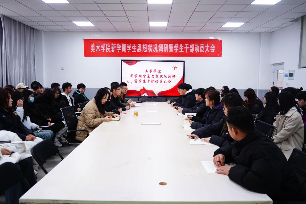3月5日下午,美术学院召开新学期学生思想状况调研暨学生干部动员会。学院党委副书记孔瑞,组织员高爽,实验员李明聪,全体辅导员,学生会主要学生干部,各班班长、团支书,宿舍舍长代表和学生代表参加会议。会议分曲阜校区、大学园两个会场进行。