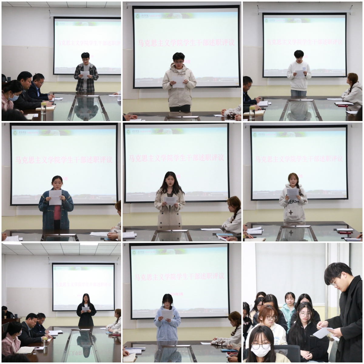 年华风采汇聚于此,勤勉担当彰显青春。这次会议不仅是对学生干部的述职评议,也是对新学期工作的展望与部署,帮助各班学生干部、团委学生会各部门明确了今后的工作方向,为本学期学团工作的顺利开展打下了扎实基础。全院学生干部、团委学生会将砥砺深耕、笃行致远,发挥模范带头作用,共同助力马院书写新篇章,创造新辉煌!