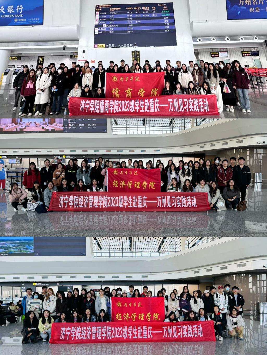 为落实学校应用型人才培养,提升学生专业素养,3月5日至24日,经济管理学院联合济宁任城区文旅局、济宁政德文化中心组织2023级旅游管理、文化产业管理、旅游管理与服务教育专业135名学生赴重庆开展专业见习实践活动。该院党委书记乔东华、党委副书记孔国良、学术副院长董腾、团委书记袁芬、院长助理徐琮、旅游管理教研室主任赵月阳、旅游管理与服务教育教研室主任王倩玉、辅导员王硕和袁铭分三批带队开展活动。