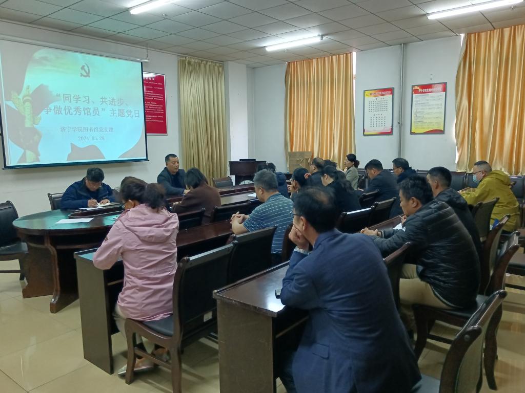 为提升党员理论素养,打造学习型党支部,3月28日下午,图书馆党支部在图书馆党员活动室(A309)开展了“同学习、共进步、争做优秀馆员”主题党日。此次活动是图书馆党支部为迎接世界读书日,开展“爱读书、读好书、善读书”系列内容之一。全体党员参加,党支部书记王绍锋主持。