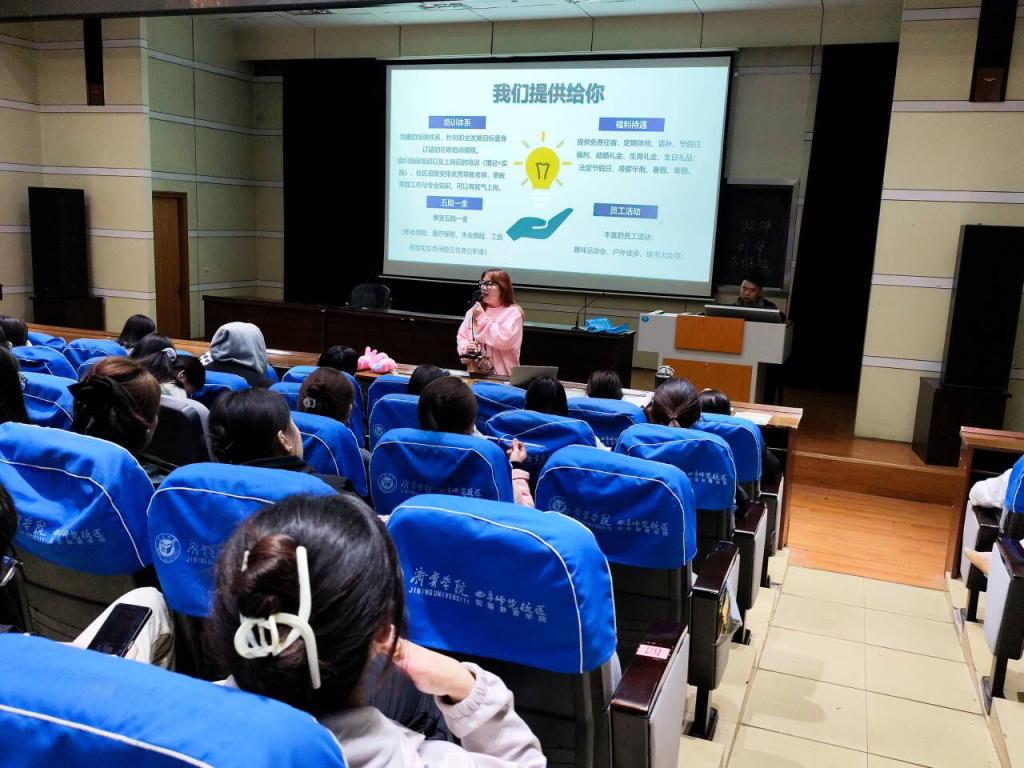 智博威教育集团宣讲负责人向同学们介绍公司基本概况、发展方向、人才需求类型、招聘岗位和专业要求、岗位晋升空间等内容,就同学们关心的问题认真详细解答。在宣讲会的提问互动环节,学生积极与企业进行交流,深入了解了工作的环境、发展前景、薪资待遇问题。同学们就自己所关心的专业对口、企业所需要的要求、公司发展平台等问题与企业人员进行互动交流。毕业生扎实的理论知识、良好的综合素质,受到用人单位的广泛认同,宣讲活动取得了良好效果。
