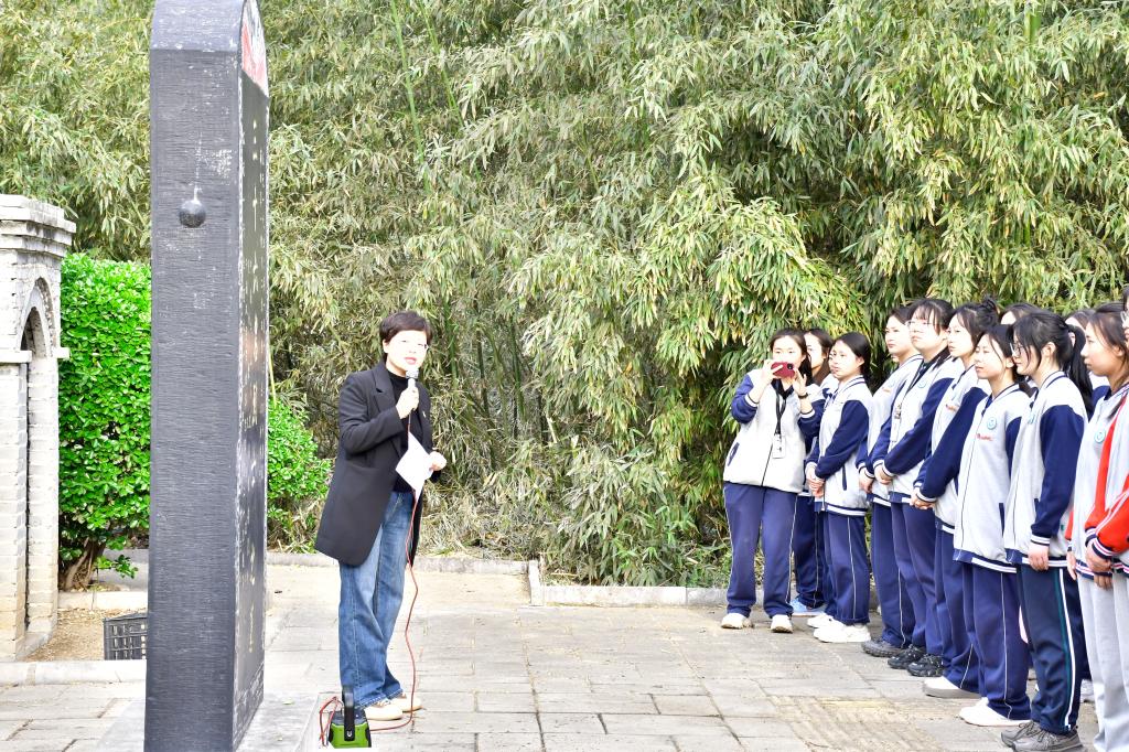 学院党委副书记丰琳琳在三十六烈士井墓前为全体青马学堂培训班学员、入党积极分子、入团积极分子讲《不能忘却的红色记忆》微党课。