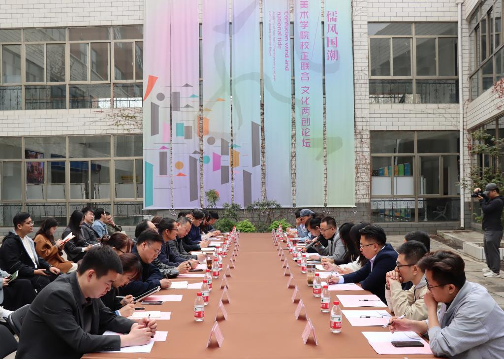 4月2日上午,美术学院邀请近20位文化类企业负责人和“非遗”技艺传承人来校,成功举办“‘儒风国潮’校企联合文化两创论坛”。美术学院党委书记杨晓青,院长张继华,党委副书记孔瑞,学术副院长狄东占,设计系主任刘乾及各专业学科带头人、教研室主任、博士代表、辅导员共同参加。论坛由学术副院长卢强主持。