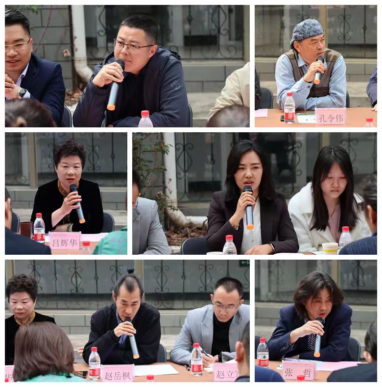 会上,米罗雕塑艺术有限公司总经理刘志伟,儒陶工艺制品有限公司总经理吕辉华,子曰华堂设计有限公司总经理陈亚飞,济宁突破文化传媒有限公司总经理张琨,合一装饰设计工程有限公司设计总监张哲,汉风艺术工程有限公司总经理李庆坤,豆神动漫有限公司总经理赵立军,等闲谷艺术粮仓文化发展有限公司艺术总监赵岳枫,盛创文化传媒有限公司总经理盛兴,曲阜文化旅游发展投资(集团)有限公司党委委员、机关支部书记程杨,非遗“葫芦雕刻技艺传承人”孔令伟,南山友喜陶艺工作室主理人颜秉韬,茂霖装饰工程有限公司主理人杜伟,就如何深化产教融合、推进文化两创、校企协同育人等方面进行了广泛深入的讨论,并表达了对艺术人才的需求和对于持续深化校企合作领域、共创美好未来的期待和祝愿。