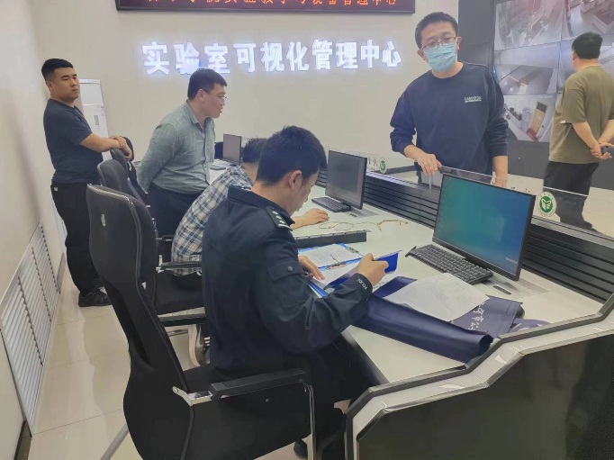 检查组一行随后前往亚星在线登录官网实验室可视化管理中心查看了易制爆试剂暂存仓库的实时监控。针对我校实验室长期使用的硝酸、过氧化氢等易制爆化学品的购买、仓储、使用等环节进行详细检查,调阅了仓库监控存贮视频,询问了视频存贮时限,并与易制爆化学品管理人员进行沟通交流,阐明了易制爆试剂日常管理要求。
