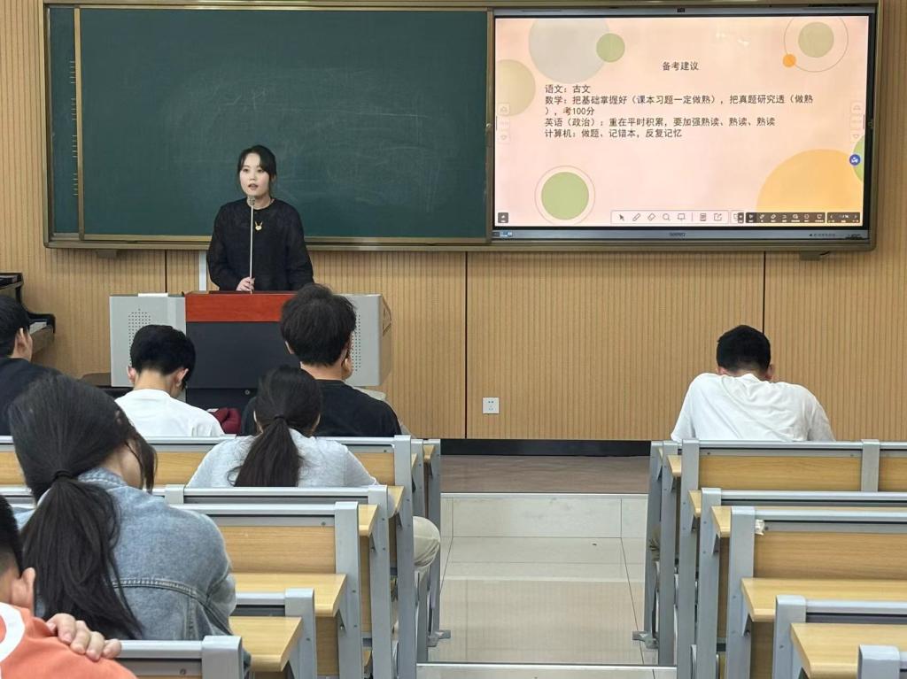 岳娜最后从个人成长、就业优势、能力提升等方面强调了专升本考试的重要意义,并鼓励学生合理制定计划、科学规划时间,坚定信念、踏实努力,坚定地朝着心中的目标努力前行。