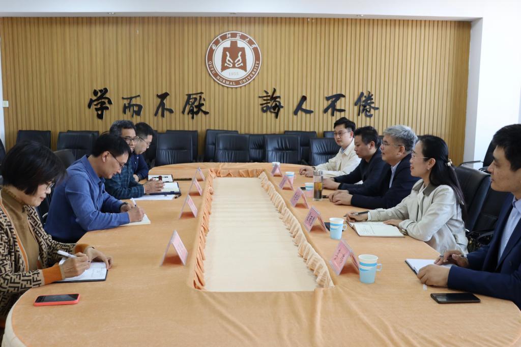 为加强交流合作,促进学院高质量发展,4月16日,经济管理学院党委书记乔东华、院长霍雨慧、学术副院长董腾、李伟、专业负责人赵月阳一行五人,赴曲阜师范大学经济学院交流学习。曲阜师范大学经济学院党委书记赵杰、院长李传健、副院长姚鹏、李玉梅参加座谈。