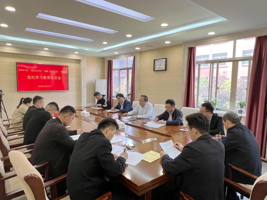 张永刚指出,开展党纪学习教育,是今年党建工作的一项重要政治任务,是深入贯彻落实全面从严治党战略部署,强化党员干部纪律规矩意识,营造风清气正政治生态的重要举措。张永刚强调,办公室同志要结合党纪学习教育开展,不断提高政治判断力、政治领悟力、政治执行力,推动“三服务”工作再上新台阶,要坚持高标准严要求,一丝不苟、严谨细致、精益求精做好各项工作,做到参谋有道、协调有方、督查有效、保障有力,不断提升工作质效。张永刚要求,一要深刻认识开展党纪学习教育的重大意义。开展党纪学习教育是加强党的建设的必然要求,是推动全面从严治党的重要抓手,是提升党员队伍素质的关键途径。二要准确把握党纪学习教育的主要内容。本次党纪学习教育,主要围绕党规党纪、新修订的《中国共产党纪律处分条例》、全面从严治党重要论述、党纪案例警示教育等方面进行深入学习,教育引导党员学纪、知纪、明纪、守纪。三要精心组织党纪学习教育开展。通过个人自学与在线学习相结合、集中学习研讨、专题辅导讲座、实地参观廉政教育基地、开展专题党课活动、组织开好专题民主生活会与专题组织生活会等不同方式,确保党纪学习教育取得实效。