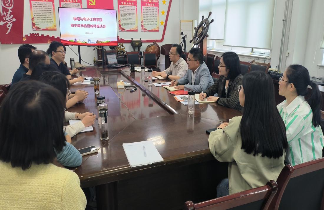 为进一步了解教师和学生在教学和学习过程中遇到的困难和问题,增进沟通交流,更好地服务教学工作,物理与电子工程学院于4月18日下午在会议室召开了教师座谈会。学院党委书记卫建勋、副院长岳现房、党委副书记李洪波、学术副院长翟倩倩、物理学、电子信息工程、材料科学与工程专业教师代表等参加了座谈会,座谈会由翟倩倩主持。