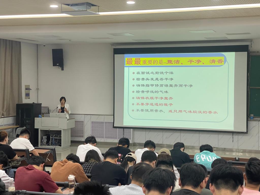 李爱兰详细解读了简历制作的具体要求、面试礼仪的重要性及如何在面试过程中展现出最优秀的自己,通过生动的案例和实用的技巧,普及简历制作和职场礼仪的相关知识,让学生们了解在不同场合下的简历制作、着装要求、仪态仪表、面试礼仪等。同时嘱咐同学们在面试过程中需全程保持端正仪态,思路清晰、条理地去表达自己的观点。在互动环节中,同学们积极参与,踊跃提问,李爱兰耐心解答同学们的疑惑,并给予了专业的建议。