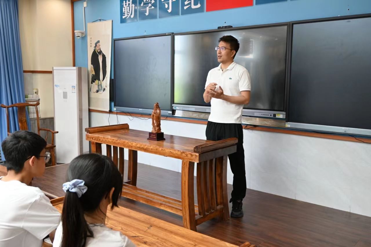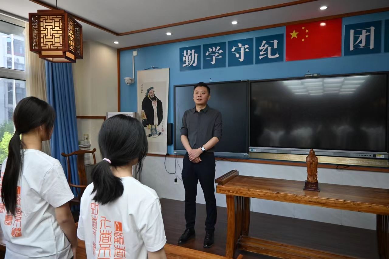 扭“篆”乾坤团队分别抵达奎文中学和曲阜市第二实验小学,向同学们详细介绍了项目理念,为学子们送上中考祈福服装和研学服装,并表达了对学子们真挚的祝福。学子们身穿祈福服装,进行拜师礼和宣誓仪式,纷纷表达了对此次活动深刻的感受。