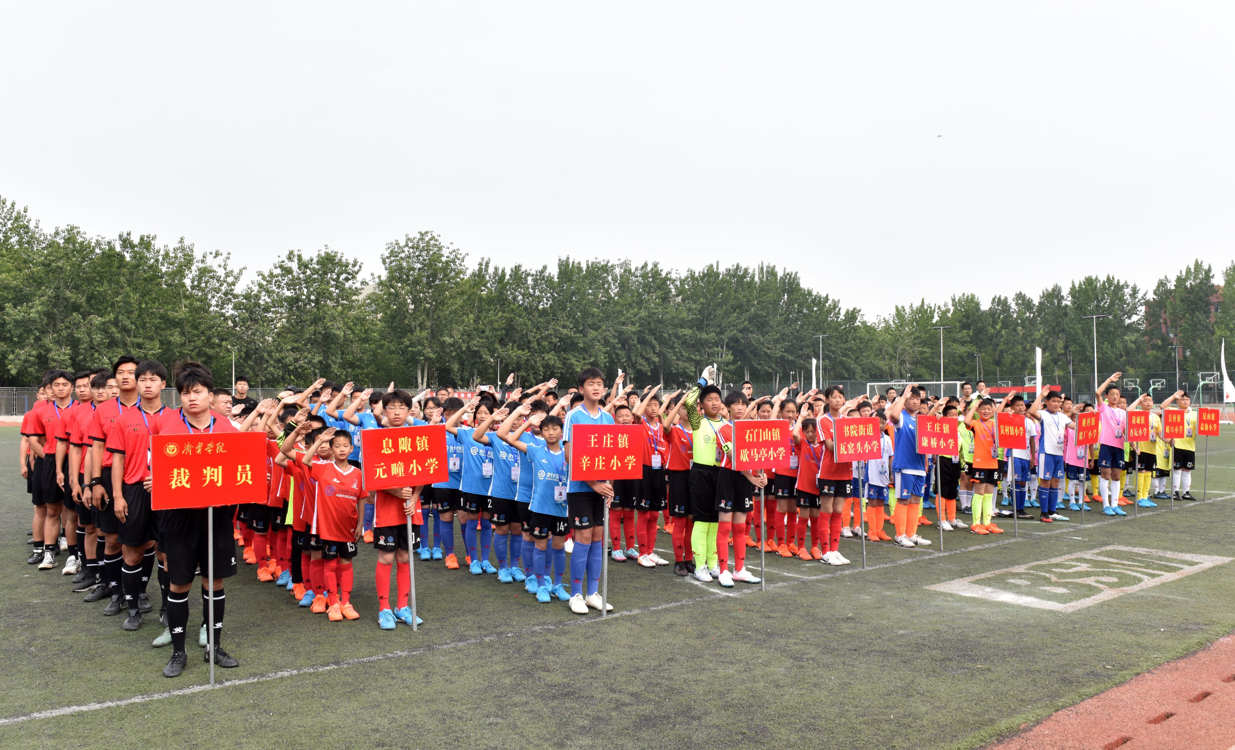 5月25日,中国红十字基金会博爱足球校队“博爱杯”曲阜市校际联赛在我校足球场隆重举行。本次比赛共有来自曲阜农村普通小学发展共同体的十所小学足球队参与。曲阜市红十字会副会长孙玉朋、曲阜市教师教育发展服务中心主任付云震、体育学院党委书记刘亚斌出席开幕式并致辞。音乐学院党委书记、济宁市足球运动协会主席辛亚杰,曲阜市红十字会主任刘永进,曲阜农村普通小学发展共同体发起人、吴村小学校长孔令强,曲阜农村普通小学发展共同体轮值校长、益海小学校长金明英、体育学院师生代表及代表队领队参加开幕式。开幕式由体育学院教师王天聪主持。