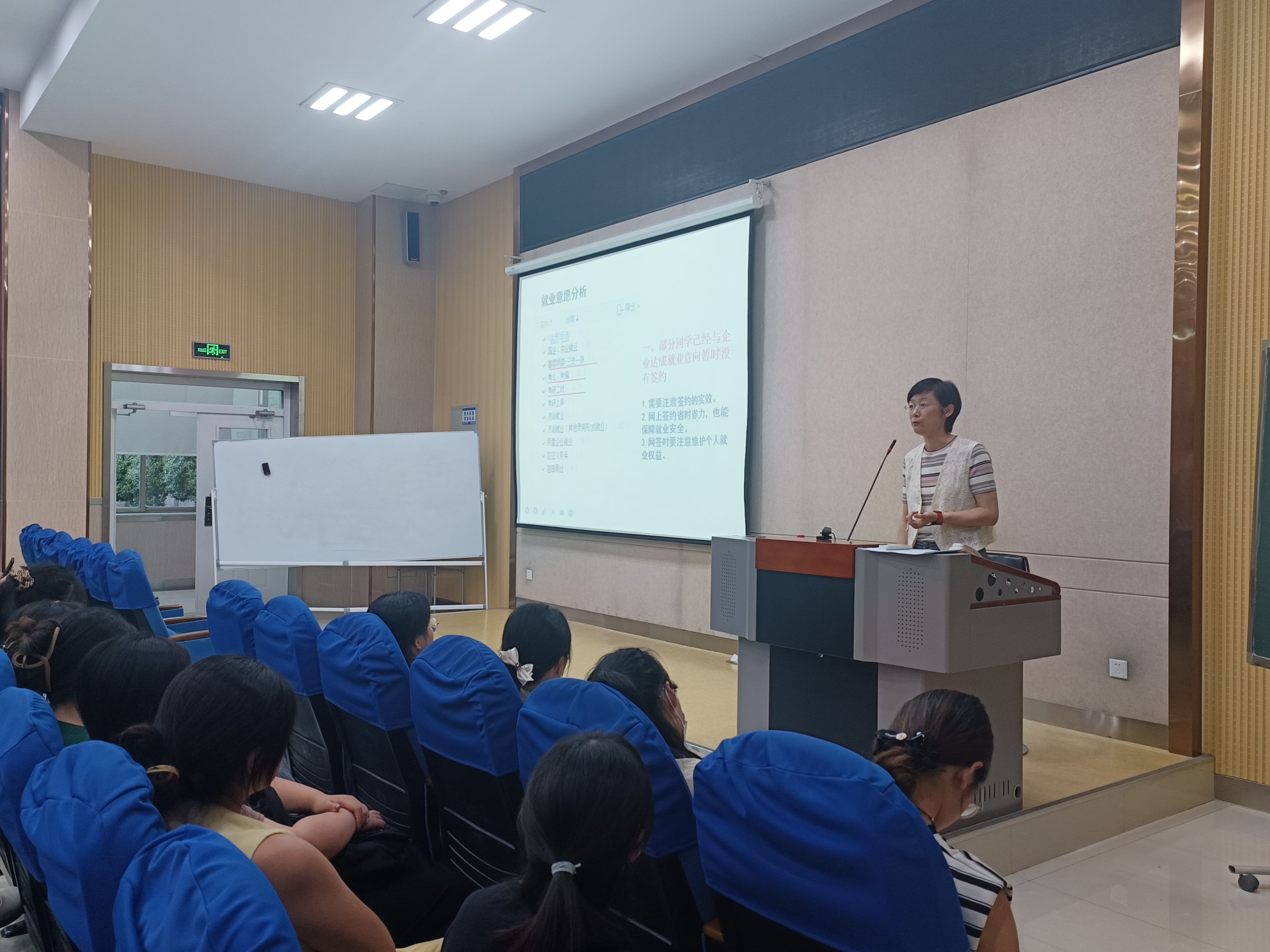 马新蕾通报了学院2024届毕业生就业情况,对未就业学生的就业意向、就业心态进行细致分析,针对不同的就业意愿逐一给出意见建议。对于考研二战、考公考编学生,一方面尊重学生的选择,同时帮助学生理性分析自身情况,指出毕业后再考压力倍增的现实,指导学生慎重选择并保持良好心态,做好两手准备。她指出学生是自身就业的第一责任人,就业是学业生涯必然的归宿,任何时候就业都不是轻轻松松的事情。初次就业不应追求完美,先就业再择业是常态。学院领导、就业包保教师、班主任、辅导员将为同学们就业提供全程指导和全方位的帮助。