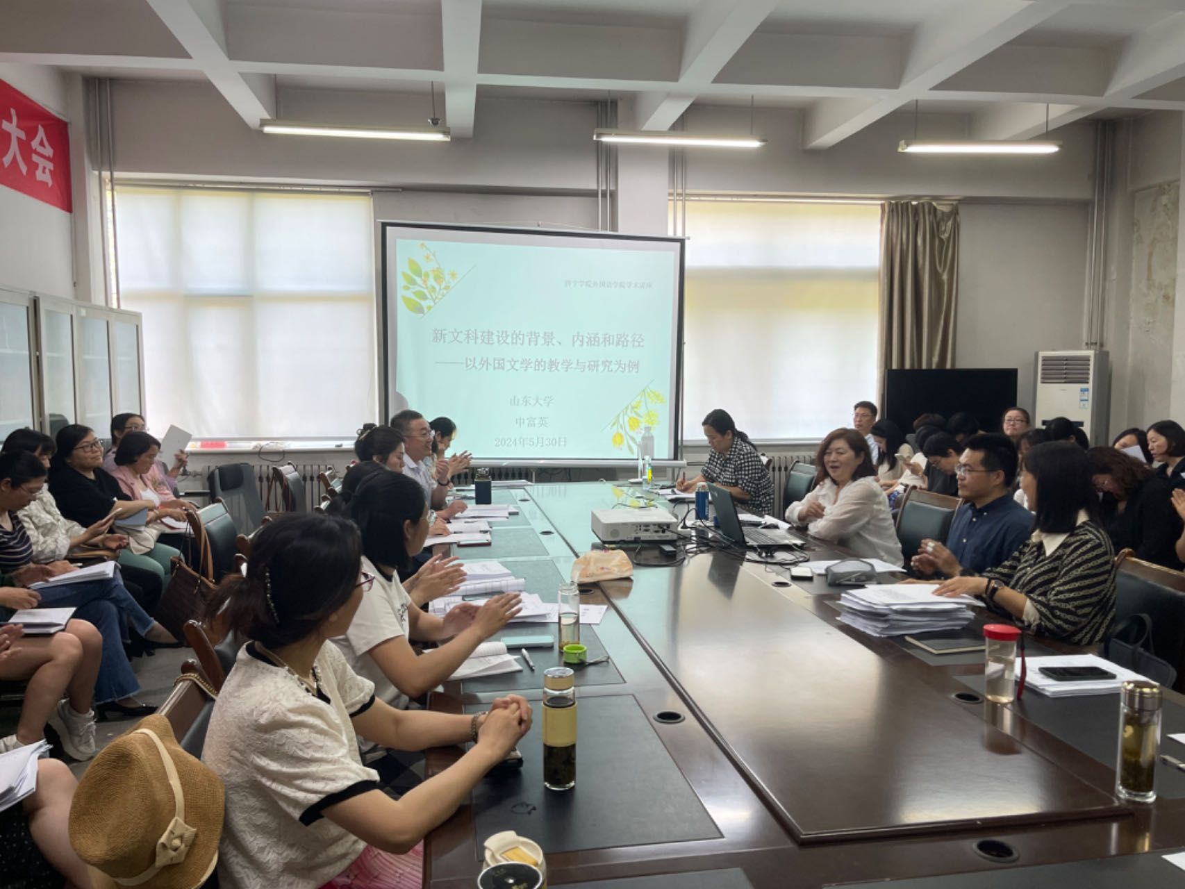 5月30日下午,外国语学院邀请我国外国文学研究界知名学者、山东大学特聘教授、博士生导师申富英作了题为“新文科建设的背景、内涵和路径——以外国文学的教学与研究为例”的学术讲座。讲座由外国语学院学术副院长范莉主持,外国语学院全体教师参加了此次讲座。